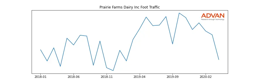 Prairie Farms Dairy Inc along with another 22 companies belongs to the Advan Consumer Non-Durables. The following chart shows the foot traffic index on this sector.