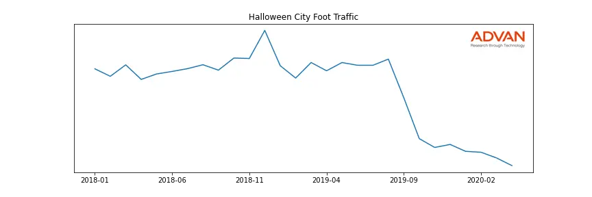 Halloween City along with another 1766 companies belongs to the Advan Consumer Discretionary. The following chart shows the foot traffic index on this sector.