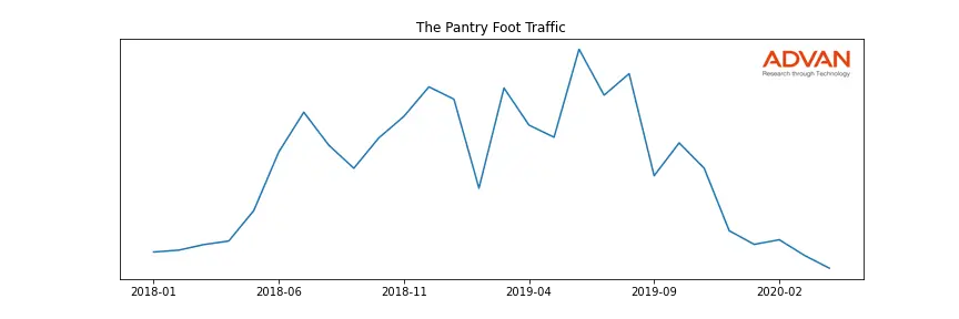 The Pantry along with another 360 companies belongs to the Advan Consumer Staples. The following chart shows the foot traffic index on this sector.