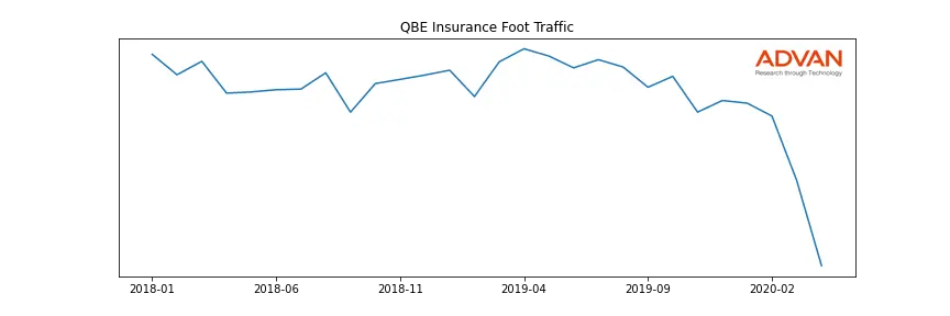QBE Insurance along with another 150 companies belongs to the Advan Financials. The following chart shows the foot traffic index on this sector.