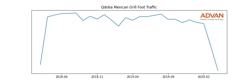 Qdoba Mexican Grill along with another 1766 companies belongs to the Advan Consumer Discretionary. The following chart shows the foot traffic index on this sector.