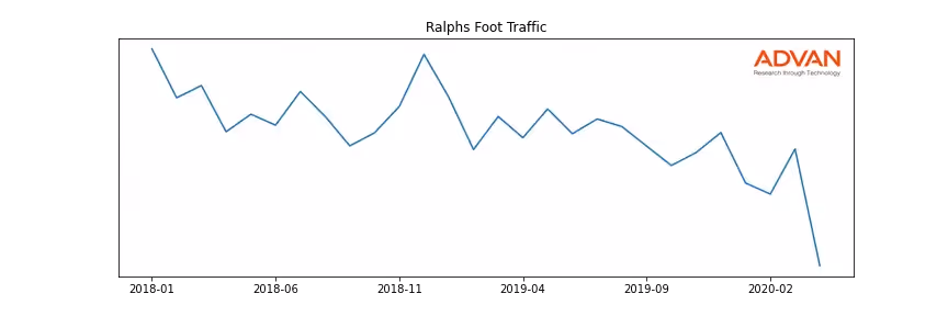 Ralphs along with another 360 companies belongs to the Advan Consumer Staples. The following chart shows the foot traffic index on this sector.