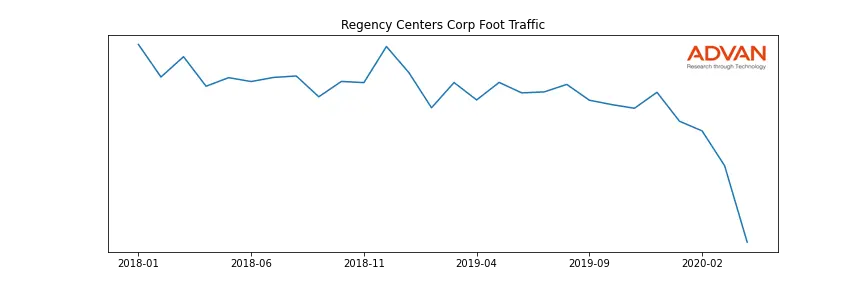 Regency Centers Corp along with another 180 companies belongs to the Advan Real Estate. The following chart shows the foot traffic index on this sector.