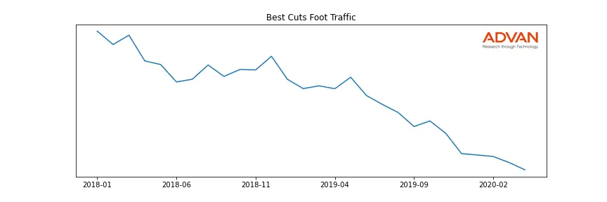 Best Cuts along with another 1766 companies belongs to the Advan Consumer Discretionary. The following chart shows the foot traffic index on this sector.