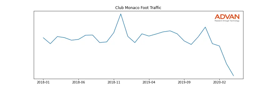 Club Monaco along with another 1766 companies belongs to the Advan Consumer Discretionary. The following chart shows the foot traffic index on this sector.