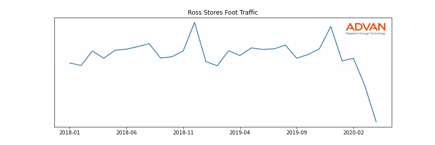 Ross Stores along with another 1766 companies belongs to the Advan Consumer Discretionary. The following chart shows the foot traffic index on this sector.