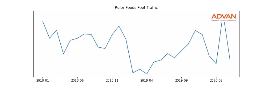 Ruler Foods along with another 360 companies belongs to the Advan Consumer Staples. The following chart shows the foot traffic index on this sector.
