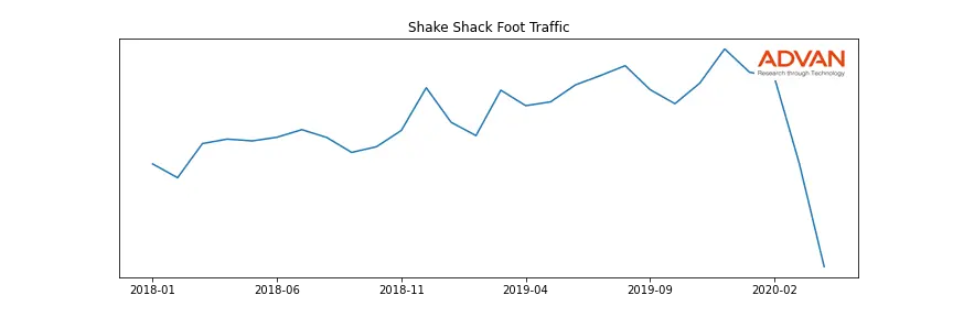 Shake Shack along with another 1766 companies belongs to the Advan Consumer Discretionary. The following chart shows the foot traffic index on this sector.