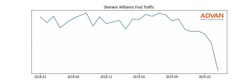 Sherwin Williams along with another 166 companies belongs to the Advan Materials. The following chart shows the foot traffic index on this sector.