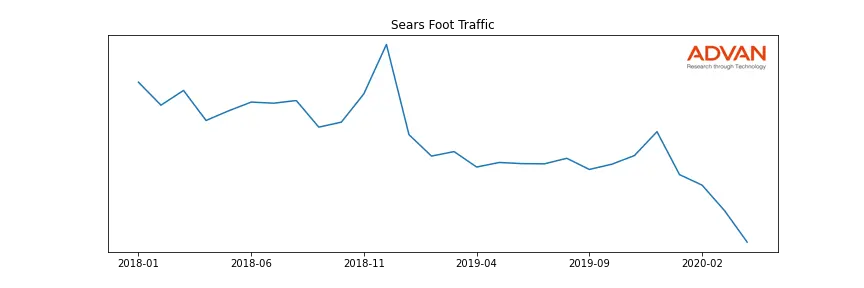 Sears along with another 360 companies belongs to the Advan Consumer Staples. The following chart shows the foot traffic index on this sector.