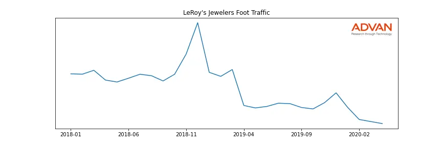 LeRoy's Jewelers along with another 1766 companies belongs to the Advan Consumer Discretionary. The following chart shows the foot traffic index on this sector.