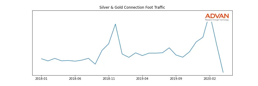 Silver & Gold Connection along with another 1766 companies belongs to the Advan Consumer Discretionary. The following chart shows the foot traffic index on this sector.