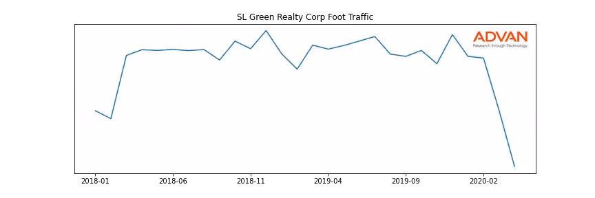 SL Green Realty Corp along with another 180 companies belongs to the Advan Real Estate. The following chart shows the foot traffic index on this sector.