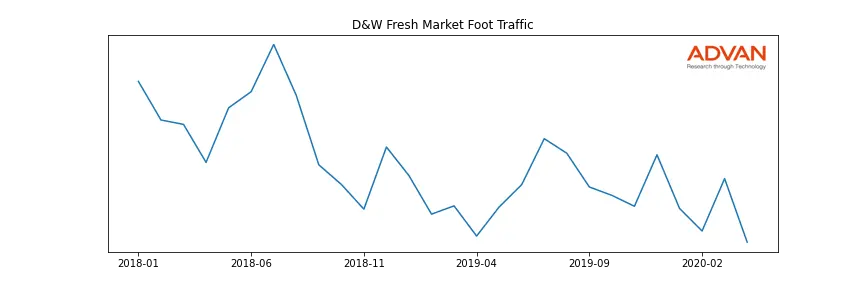 D&W Fresh Market along with another 360 companies belongs to the Advan Consumer Staples. The following chart shows the foot traffic index on this sector.