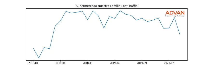 Supermercado Nuestra Familia along with another 360 companies belongs to the Advan Consumer Staples. The following chart shows the foot traffic index on this sector.