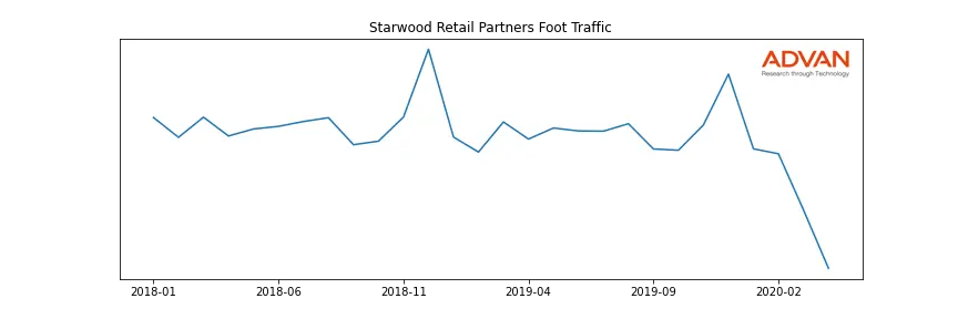 Starwood Retail Partners along with another 180 companies belongs to the Advan Real Estate. The following chart shows the foot traffic index on this sector.