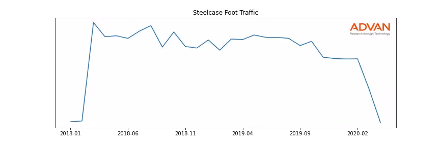 Steelcase along with another 301 companies belongs to the Advan Industrials. The following chart shows the foot traffic index on this sector.