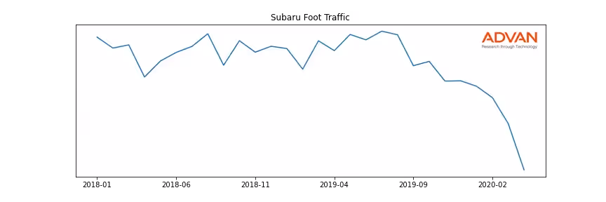 Subaru along with another 1766 companies belongs to the Advan Consumer Discretionary. The following chart shows the foot traffic index on this sector.