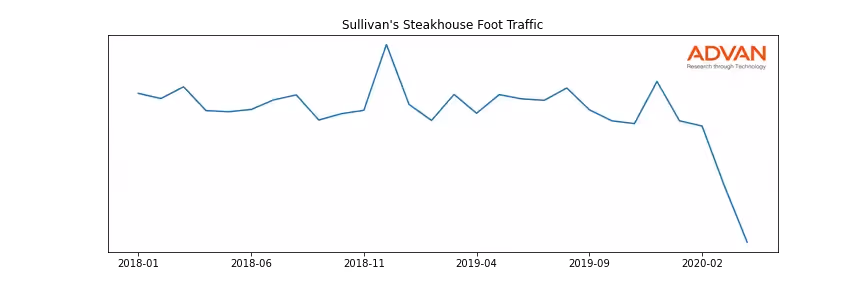 Sullivan's Steakhouse along with another 1766 companies belongs to the Advan Consumer Discretionary. The following chart shows the foot traffic index on this sector.