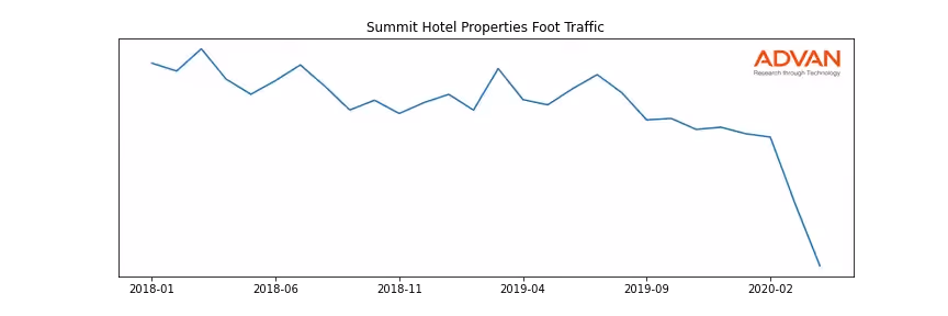 Summit Hotel Properties along with another 180 companies belongs to the Advan Real Estate. The following chart shows the foot traffic index on this sector.