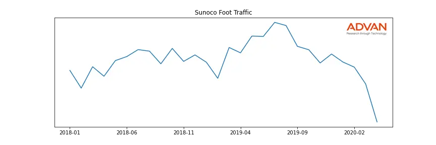 Sunoco along with another 109 companies belongs to the Advan Energy. The following chart shows the foot traffic index on this sector.