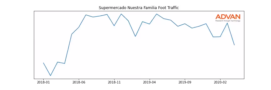 Supermercado Nuestra Familia along with another 360 companies belongs to the Advan Consumer Staples. The following chart shows the foot traffic index on this sector.