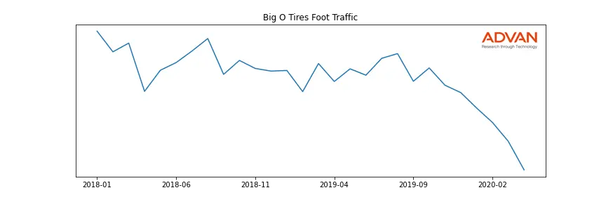 Big O Tires along with another 1766 companies belongs to the Advan Consumer Discretionary. The following chart shows the foot traffic index on this sector.