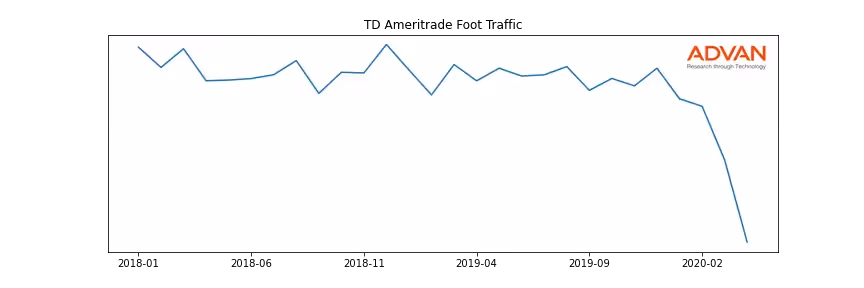 TD Ameritrade along with another 150 companies belongs to the Advan Financials. The following chart shows the foot traffic index on this sector.