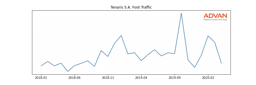 Tenaris S.A. along with another 24 companies belongs to the Advan Basic Industries. The following chart shows the foot traffic index on this sector.