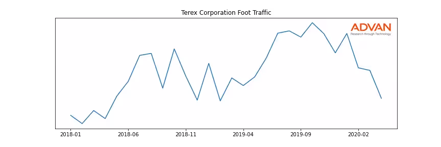 Terex Corporation along with another 301 companies belongs to the Advan Industrials. The following chart shows the foot traffic index on this sector.