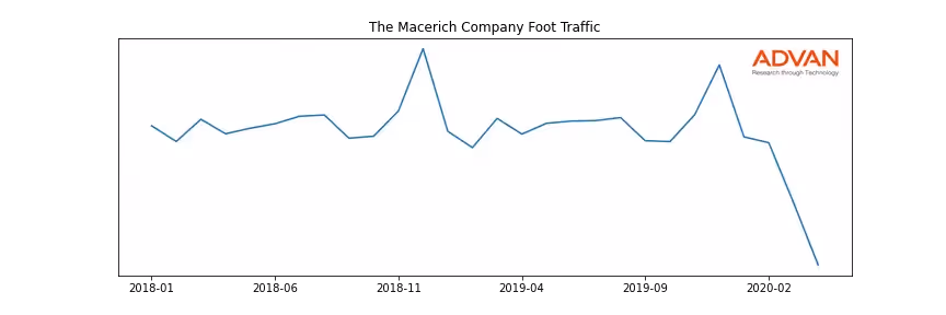 The Macerich Company along with another 180 companies belongs to the Advan Real Estate. The following chart shows the foot traffic index on this sector.