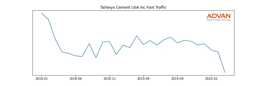 Taiheiyo Cement USA Inc along with another 166 companies belongs to the Advan Materials. The following chart shows the foot traffic index on this sector.