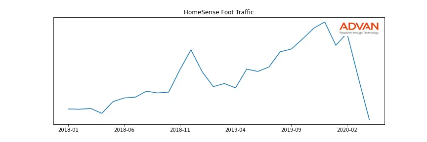 HomeSense along with another 1766 companies belongs to the Advan Consumer Discretionary. The following chart shows the foot traffic index on this sector.