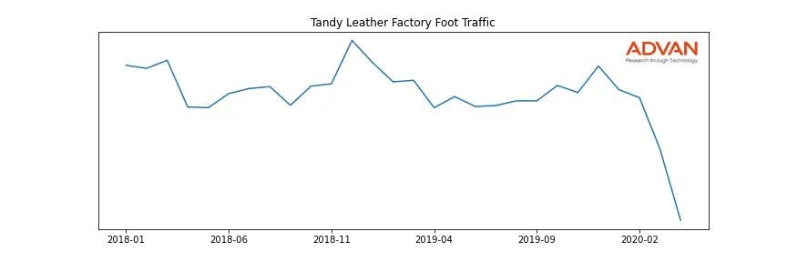 Tandy Leather Factory along with another 1766 companies belongs to the Advan Consumer Discretionary. The following chart shows the foot traffic index on this sector.