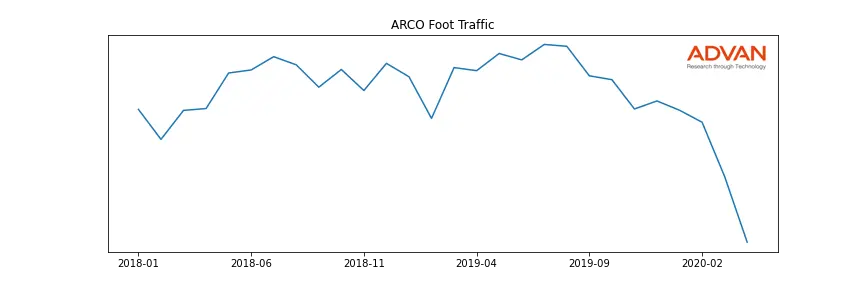 ARCO along with another 109 companies belongs to the Advan Energy. The following chart shows the foot traffic index on this sector.