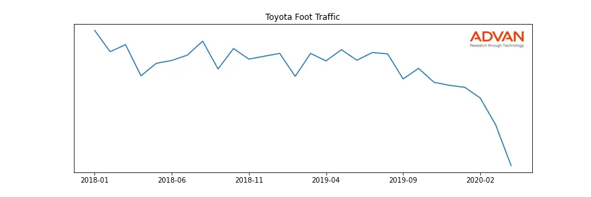 Toyota along with another 1766 companies belongs to the Advan Consumer Discretionary. The following chart shows the foot traffic index on this sector.