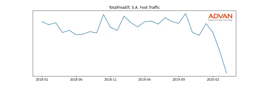 TotalFinaElf, S.A. along with another 109 companies belongs to the Advan Energy. The following chart shows the foot traffic index on this sector.