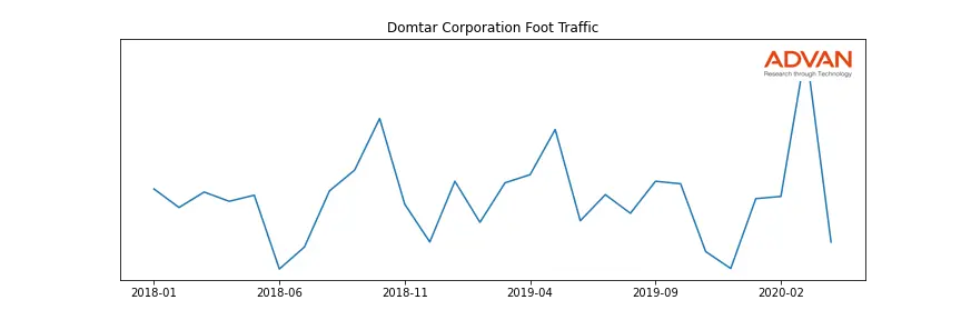 Domtar Corporation along with another 166 companies belongs to the Advan Materials. The following chart shows the foot traffic index on this sector.