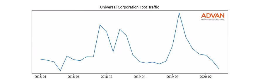 Universal Corporation along with another 360 companies belongs to the Advan Consumer Staples. The following chart shows the foot traffic index on this sector.