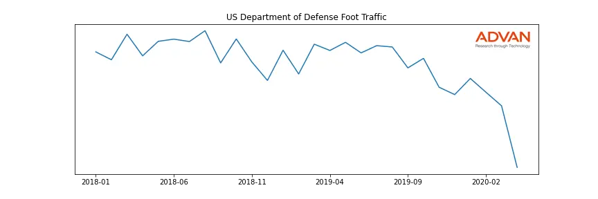 US Department of Defense along with another 37 companies belongs to the Advan Capital Goods. The following chart shows the foot traffic index on this sector.