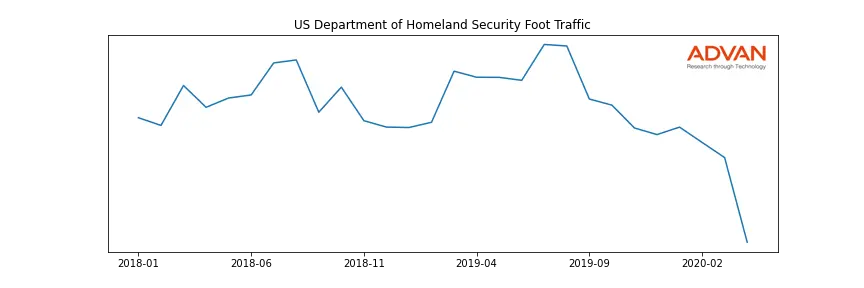 US Department of Homeland Security along with another 37 companies belongs to the Advan Capital Goods. The following chart shows the foot traffic index on this sector.