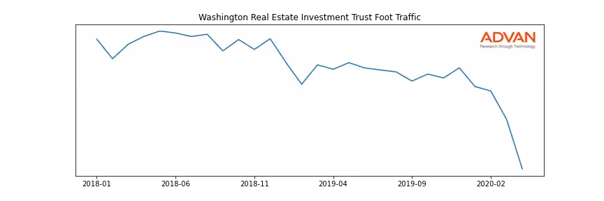 Washington Real Estate Investment Trust along with another 180 companies belongs to the Advan Real Estate. The following chart shows the foot traffic index on this sector.