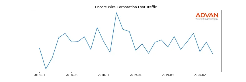 Encore Wire Corporation along with another 301 companies belongs to the Advan Industrials. The following chart shows the foot traffic index on this sector.