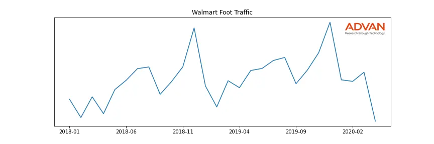 Walmart along with another 360 companies belongs to the Advan Consumer Staples. The following chart shows the foot traffic index on this sector.