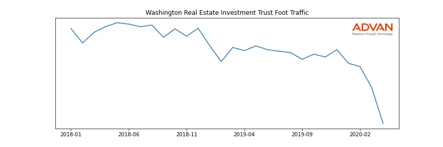 Washington Real Estate Investment Trust along with another 180 companies belongs to the Advan Real Estate. The following chart shows the foot traffic index on this sector.