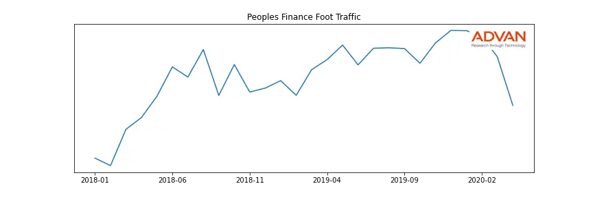Peoples Finance along with another 150 companies belongs to the Advan Financials. The following chart shows the foot traffic index on this sector.