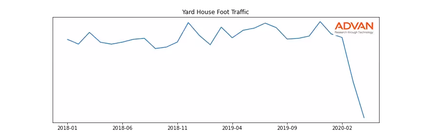 Yard House along with another 1766 companies belongs to the Advan Consumer Discretionary. The following chart shows the foot traffic index on this sector.