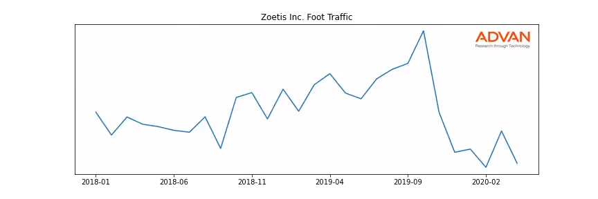 Zoetis Inc. along with another 144 companies belongs to the Advan Health Care. The following chart shows the foot traffic index on this sector.
